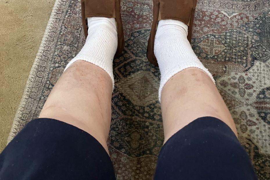 Men of my generation stop wearing short pants after Catholic Holy Communion, AKA age seven. At my age and within my generation, standard morality and good taste means showers in the dark, dressing in the dark, and all other activities in the dark that expose more than face and hands. So I am not sure where this insane journey into bare shins will lead me. I feel a rebel.